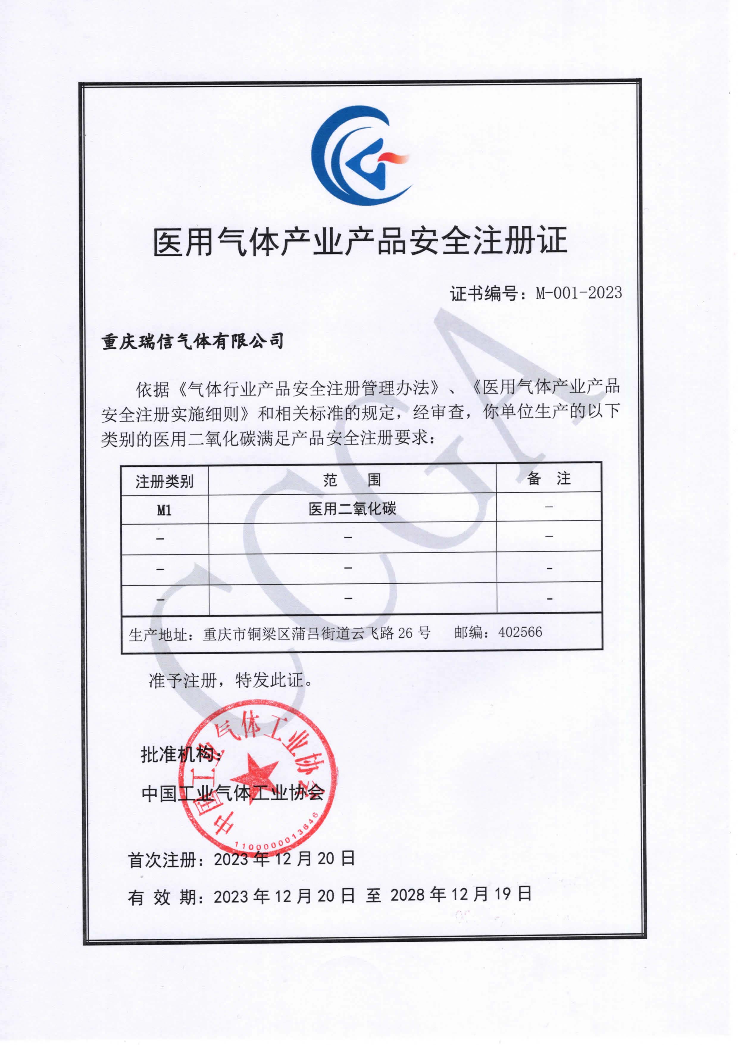 重庆瑞信-医用气体产品安全注册证