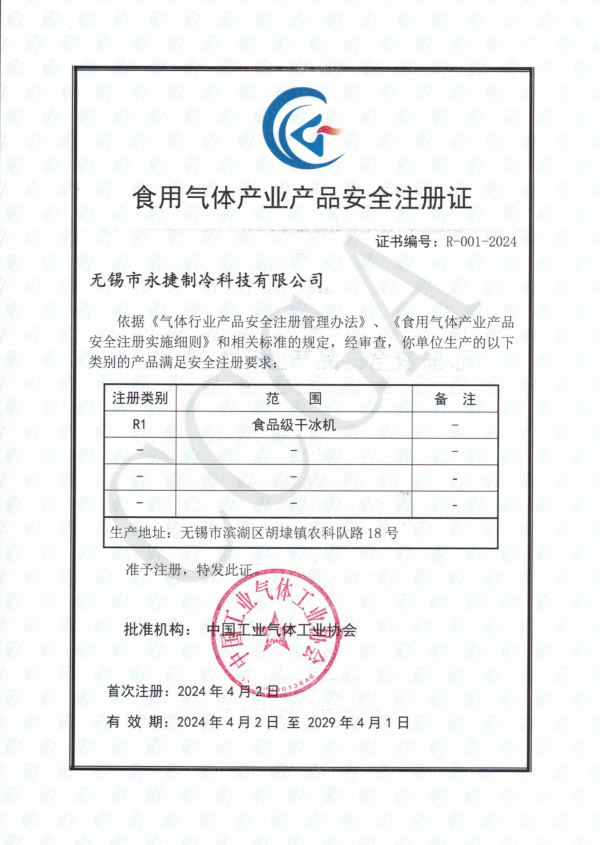 无锡市永捷制冷-医用气体产品安全注册证